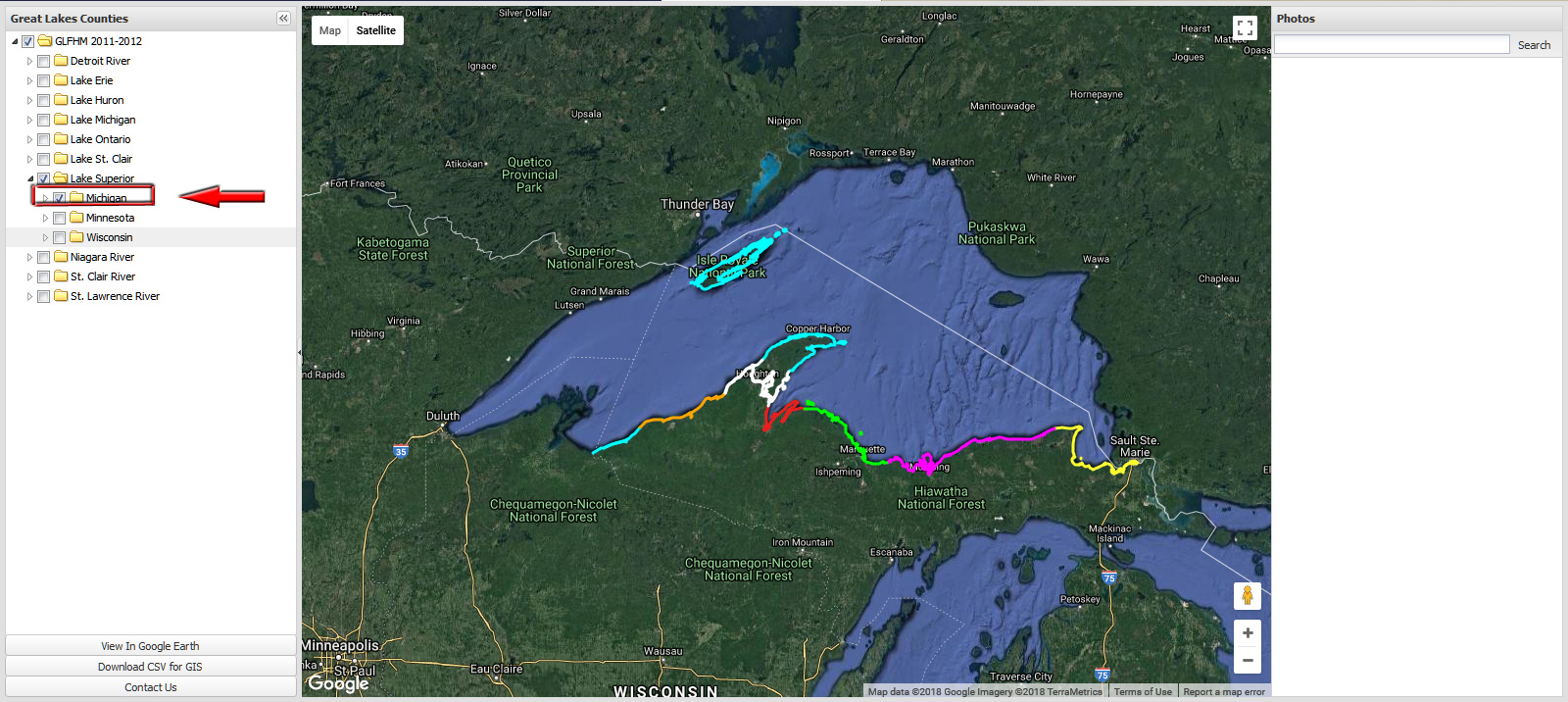 The remaining color tracks represent the imagery available by County in Michigan.