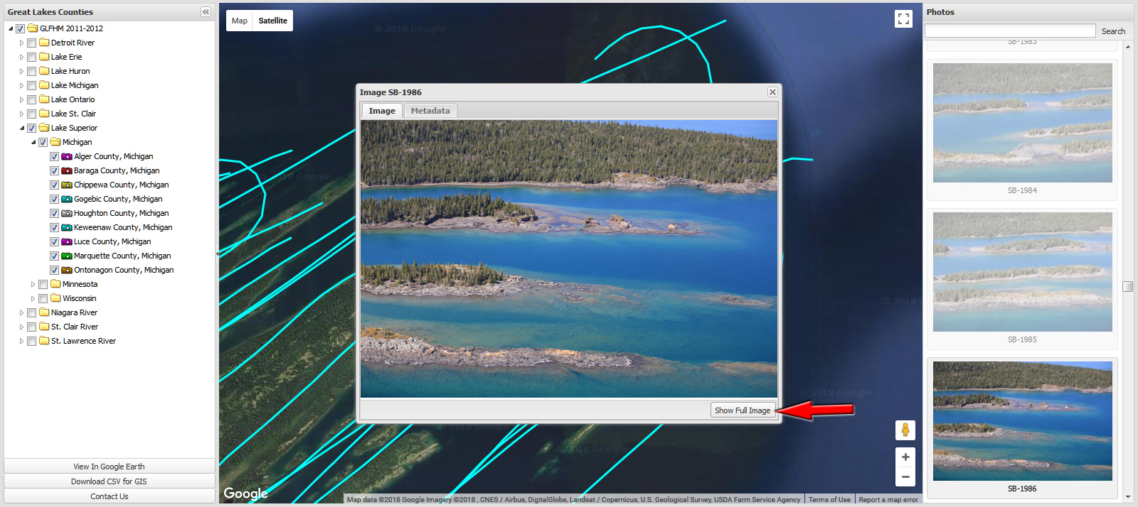 A new pop-up window will open over the map and a medium sized image will load into it.
